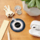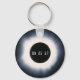 Near black and white artistic view of a total solar eclipse, showing the bright glow of the sun’s corona radiating from behind the blocking image of the full moon.