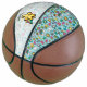 Basketball with super cute doodle illustrations. There is a fun colourful pattern on one panel and a cute smiling star on the other. Personalise with a name.