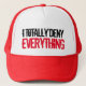 You weren't there. You don't know a thing. You are completely innocent. This hat is living proof! Make your case - that you totally deny everything! Fun hat for many occasions, or none at all. Stake your claim, and clear your name...buy one of these! Choose your hat colour, and imprint colour and be on your merry way.