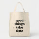Hey here are tote bags for you to feel easy to carry and easy to travel. bag contains a print of motivation Quote that the Good things take time.