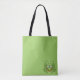 Tote bag is shown in the colour lime green with a cute cartoon grasshopper print, customise this tote and add more like a name or buy as is.