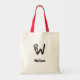 Letter is a capital W formed by a very fat cat with a crimped black tail. Beneath is Name to be personalised - defaults to Wallace. Reverse side shows two paw prints in black.