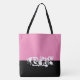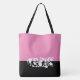 This cute stylish large tote bag is shown in hot pink and black colour block with the special text Vegas.
