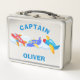 This personalised metal lunch box features three cute aeroplanes with different colours over the clouds.