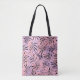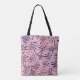 This cute stylish medium size tote bag is shown in a black, pink and purple coloured tropical leaves print design.