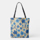 Carry your essentials in style with this beautiful tote bag, boasting intricate blue floral on a beige background. Vibrant blooms and sturdy black straps create the perfect combination of elegance and functionality, ideal for shopping, work, or casual outings, as it is both lightweight and durable.