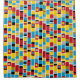 A design made up of stripes with hand painted bands, blocks and spots of colour in shades of of red, amber, deep gold, blue, grey black and white. Inspired by painted totems.