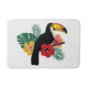 Toucan bird and tropical hibiscus flower bathroom mat. Beautiful toucan and tropical flowers mat add unique tropical style to your bathroom. Matching bath accessories and shower curtain are also available.