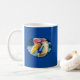 blue coffee mug with coloful toucan bird design
