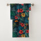 tropical seamless pattern with tropical leaves and flowers and 2 toucan birds.