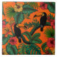 tropical seamless pattern with tropical leaves and flowers and 2 toucan birds.