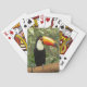 In a lush tropical rainforest, a vibrant toucan perches gracefully on a moss-covered tree branch, its striking, oversized beak contrasting brilliantly against the verdant foliage. The bird's iridescent plumage and intense gaze make for a captivating image, showcasing the beauty and exotic allure.