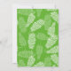 Tropical-themed baby shower invitation in bright colours: red, blue, and green. Baby shower is written in a charming script. At the bottom, a myriad of colourful tropical flowers, plants, and berries, and a smiling toucan. The back features a green and white front pattern.
