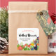 Tropical baby shower thank you sticker in bright colours: red, blue, and green. Baby shower is written in a charming script. At the bottom, a myriad of colourful tropical flowers, plants, and berries, and a smiling toucan. Personalise with the mum-to-be's name.