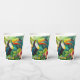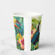 Image of a tropical toucan bird surrounded with green leaves and hibiscus flowers, generated with the help of AI. You can easily personalise this paper cup with your own name or text.
