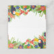 Blank place card with a toucan, tropical plants, and tropical flowers.