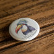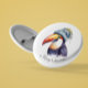 Below the toucan design, or within the surrounding area, you'll find a customisable text area. Personalise your pin button with: