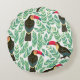 Toucans, tropical leaves, decorative pattern. round cushion