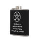 The flask itself is fine. It’s a cheap flask, obviously bought in bulk, however am prepared to overlook that. Given that it is a personalized item, I would have liked to have seen gift boxing instead of the generic packaging. Terrible printing, and/or quality. It’s a cheap, tacky vinyl. It is not cut straight and is also applied in a way that it is overhanging the bottom, causing the glue to catch on items and it will eventually roll and tear, damaging the wrap.
