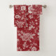 Our Vintage garden toile bath towel set is the perfect way to add a touch of classic elegance to your bathroom. The beautiful flowers are hand drawn ink elements and set on a red background. Visit our shop to view our large collection of toile pattern for your home.