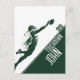 This highly customisable football-themed postcard provides an action scene where a football player flies to catch the ball over the touchdown line. This is a great design for pro or amateur American football players where you can customise the name, the jersey number, and the message.
