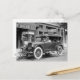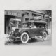 1920s tire puncture test. Lee Tire Comapny test with antique car up on on beds of nails, 1922. Nice view with old store front advertising signs.