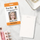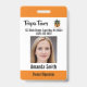 Customise your Tour Business Photo ID badge. All details can be modified or removed. Photo, company, logo, name, department/division/title, address and email. Crisp black text on white background with tropical orange coloured strip at the top and bottom. Every detail can be customised.