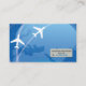Stylish business cards with white aeroplanes around blue globe. Perfect for Travel Agency, Tourism Firm and tour guide. Easy to customise with your information.