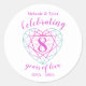 Tourmaline two tone heart stone celebrating 8 years of love anniversary stickers. Simple outline heart stone effect line art graphics in teal green to pink and white 8th tourmaline Wedding Anniversary round stickers. Customise with your own eighth wedding anniversary party details. The 8th Anniversary is associated with the gemstone tourmaline and the heart symbolises love. Graphics and design by Sarah Trett for www.mylittleedenweddings.com on zazzle.