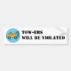 Tow-ers will be violated Bumper Sticker