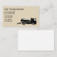 Car towing business cards with image of a tow truck towing a car on a flat bed truck and simple layout. Designed for the auto recovery industry.
