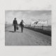 Two people walking along road, heading towards Los Angeles, California, near a billboard that says "Next time, try the train. Relax." Photo by Dorothea Lange, March 1937.
