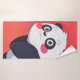 An irresistibly cute cartoon panda with big sparkling eyes, rosy cheeks, and a playful grin, set against a vibrant red background. Perfect for kids' blankets or adding fun to any cosy space!