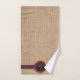 There are so many different varieties of sunflowers and we enjoy growing them every year. My biggest challenge has been photographing them because they get so tall! This stunning bloom is, clearly, not your run-of-the-mill sunflower. The astonishing depth of colour is especially striking against the textural background photograph of burlap for an overall wonderfully rustic effect on this delightful towel set.  A strip of dark wine, white polka-dotted "ribbon" has been added behind the bloom, beautifully accentuating the overall colour of the flower.