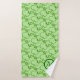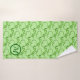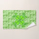 Ivy leaves in bright green on pale green background. Four solid individual leaves have tips meeting at centre, and appears on wash cloth and hand towel. Dark green circle with pale green background in centre  with initial, shows on washcloth and towel . Outlines of single leaf is replicated to intertwine as a background on towel and hand towel. Personalise by changing the initial in centre of circle, same colour as circle outline.