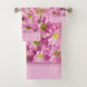 There are so many stories about the daisy. In literature, Goethe immortalised the daisy when Marguerite needed to know if Faust loved her as she plucked the daisy petals and said, "He loves me. He loves me not." The daisy received its scientific name, Bellis, from mythology. It is said that the guardian deity of the orchards pursued a young tree nymph without reciprocation. As she sought to escape him, the nymph asked the gods for help. The powerful king of Argos was grandfather to the nymph, so when she appealed to the gods for help, they transformed her into a tiny flower named Bellis, allowing her to escape a terrible fate. There is also a Christian legend involving this cheerful flower. It tells that the Wise Men, while on their journey to find the Baby Jesus requested a sign to help them find the actual birthplace once in Jerusalem. They noticed many clusters of small, white, daisies near a stable. Recognising the flower's resemblance to the star overhead, they knew they had found the Holy Family. The name, "Daisy" is thought to come from Anglo Saxon words "daes eage" meaning, literally, "day's eye". The daisy is believed, by some, to be the bringer of good fortune and blissful pleasure. Others say it symbolises innocence and purity. Along with the Sweet Pea, the Daisy is also one of APRIL's birth flowers. For such a simple little flower, the daisy has a long, impressive list of stories surrounding it. These Gerbera or "Gerber" daisies are generally larger than their "true daisy" relatives, some as large as small sunflowers. Gerbera daisies are the 5th Most Popular Flower In The World! Gerbera daisies represent cheerfulness, joy, friendship and good luck. The pink Gerbera daisy, specifically, is symbolic of gratitude and a beautiful was of saying, "Thank you". These incredibly lovely flowers are of the "single Gerbera" variety, as noted with the single-sized petals and greenish-yellow eye. For this stunning towel set, the lovely photographic image has been accentuated by two "strands" of "pearls" in coordinating shades of pink. These blend down to the solid, anchoring base that is also in pink.