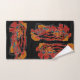 fabulous designs on towels and face cloth... dramatic and bold. sophisticated and elegant... black, red, turquoise, orange, purple, yellow and blue.