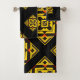 Bath towel set with patterns inspired by African colors and patterns, for a warm decoration of your bathroom. For a harmonious decor, explore the Afro Bath Collection.