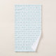 Towels with a light blue fish pattern hang neatly on a silver rod against a white wall. Below, a matching hand towel is displayed flat, exuding a fresh, nautical vibe.