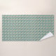 Towels with a teal floral pattern hang