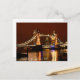 Postcard: London with beautifully lit Tower Bridge at night. Famous London's landmark, iconic and popular spot, situated by the Tower of London (castle). Two towers of the bridge are also connected by walking high bridge on the top of the towers. This is to allow foot traffic to pass, when bridge opens for ships to pass under (in the old days, nowadays used for excellent view point). The main connecting bridge, that opens in the middle to let large ships, boats to pass. Unique night coloured photo with lights reflecting in the river Thames. Travel/Architecture series - London, England & Great Britain. Original Photography/Art/Design by work4dream.