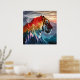 The illustration features a striking tiger silhouette merging with majestic mountains to form the outline of a tiger's head. A rich array of vibrant colours including red, gold, blue, purple, and green come together to create a mesmerising effect. The backdrop of a cinematic sky suggesting a sunset casts warm tones over the mountains, adding to the overall visual allure of the scene.