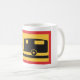 An icon of a car towing a caravan. This design looks really effective on these Mug
