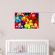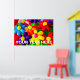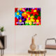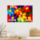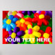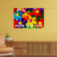 Bunch of inflatable toy balloons shaped as flowers of different colours. Merry holidays! Be happy! Just a poster for your needs. You can change or delete the template text