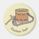 Toy drum icon with strap and drumsticks in vintage colour palette. Custom text.