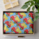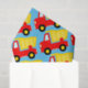 Colourful toy dump truck kids Birthday gift tissue paper. Custom filler for presents and party favours for children. Trendy party supplies and DIY accessories for fun birthday or baby shower celebrations etc. Customisable background colour behind the red dumptruck pattern. Construction vehicle illustration for boys.