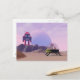 A retro toy moon walker travels accross an alien world while a giant "Thunder Robot" looms in the background.
