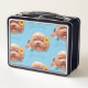 Toy Poodle with Flower and Phone Illustration Metal Lunch Box