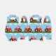 Toy tractor tiled pattern on a light blue background, with clouds and grass. Graphic design ideal for nursery decoration or gifts for young children.