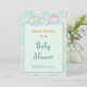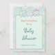 Adorable neutral theme pastel toy train with aqua blue touches of yellow and other colours. Customise this baby shower Invitation with all your party information on front and back of invitation.